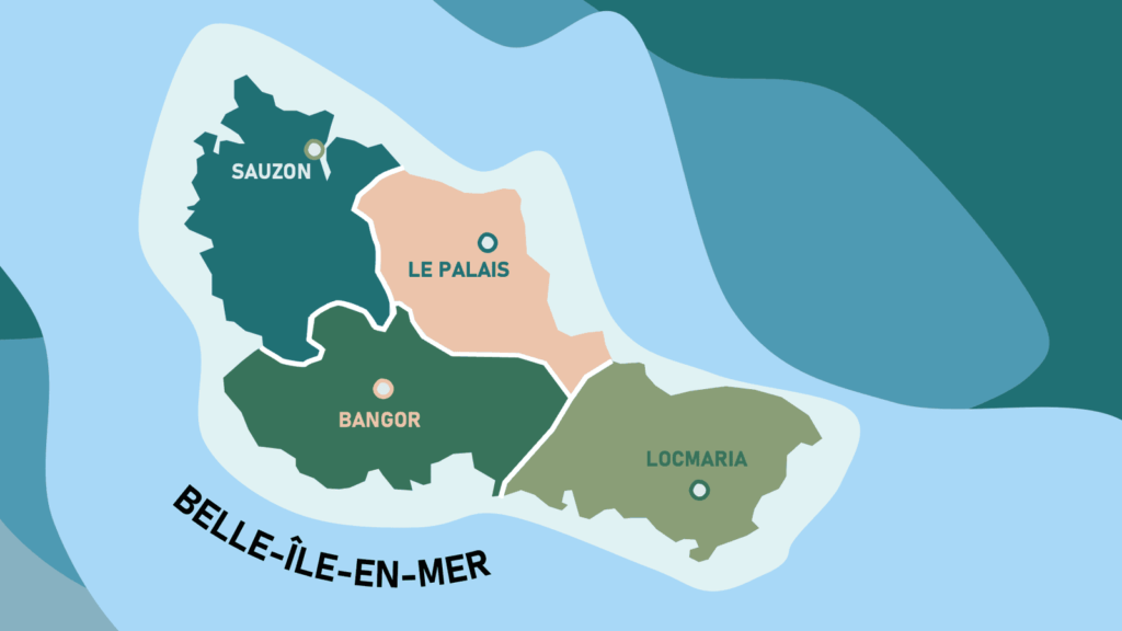 Die schöne Insel teil sich in die Gemeinden Le Palais, Sauzon, Bangor und Locmaria, jede mit ihrem eigenen Charme und ihrer eigenen Geschichte.