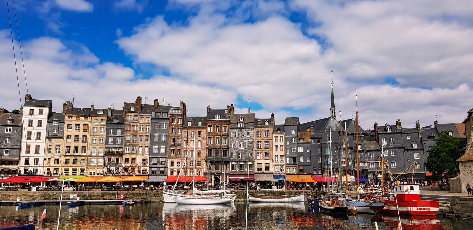 Honfleur liegt streng genommen nicht mehr an der Alabasterküste, sondern an der Blumenküste und etwa 30 Autominuten von Le Havre entfernt. Der kleine Fischerhafen hat sich im Laufe der Zeit zu einem der reizvollsten Küstenorte der Normandie entwickelt. Mit seinen kleinen, denkmalgeschützten Gassen, den malerischen Fachwerkhäusern, den Resten der alten Festung Lieutenance und den bunten Fischerbooten im alten Hafen „Vieux Bassin“ zieht er jährlich Tausende von Besuchern an. Hier kann man sich wunderbar treiben lassen, hier und da einen Cidre oder ein paar Austern schlürfen und sich wie im siebten Himmel fühlen… nur in der Normandie!