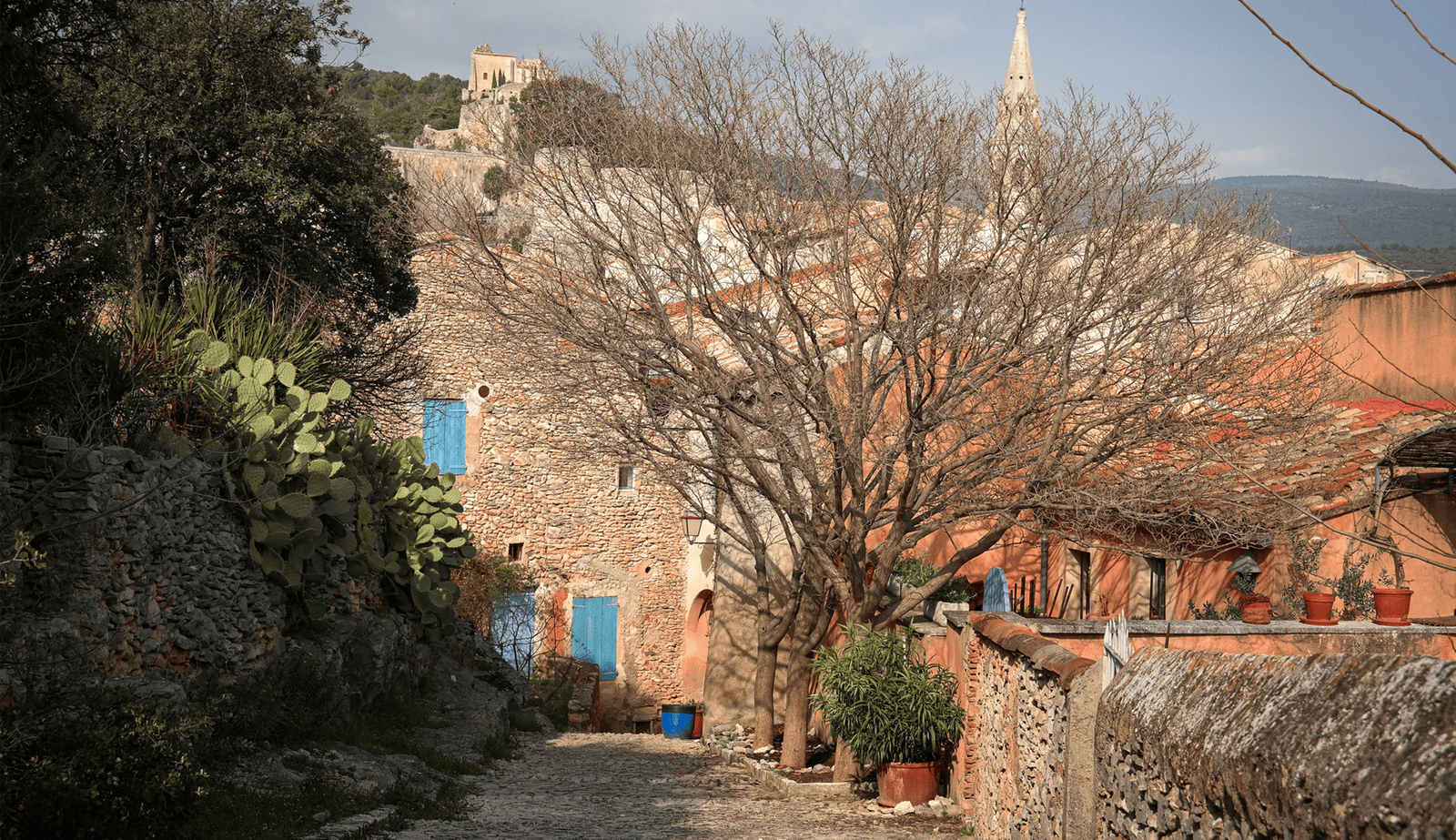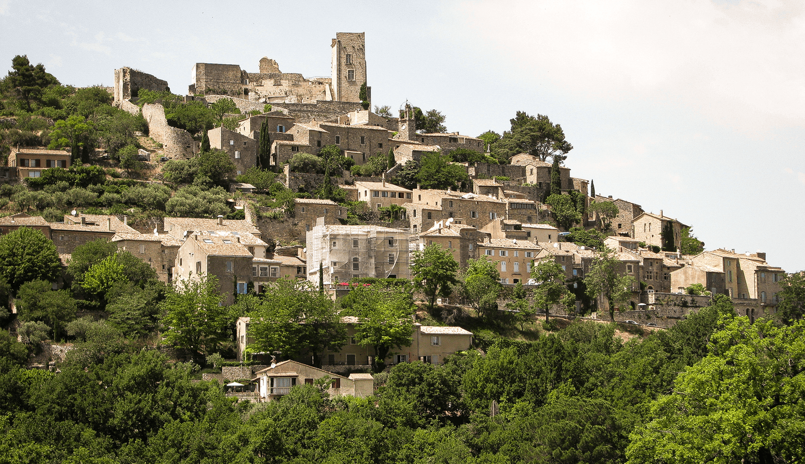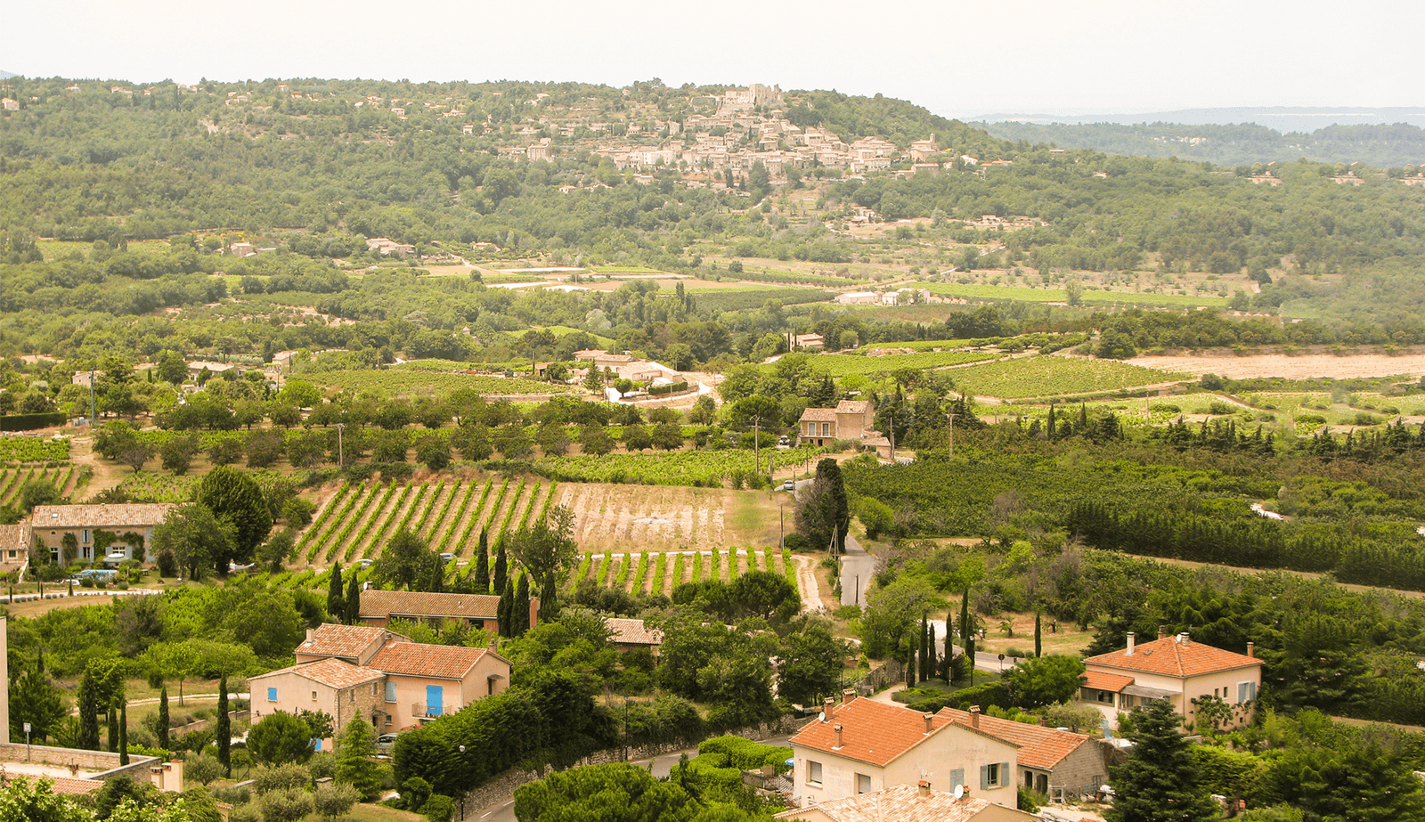Das Dorf liegt auf einem Hügel und bietet einen atemberaubenden Blick auf die umliegende Landschaft mit ihren Weinbergen, Olivenhainen und Lavendelfeldern. Die sonnenverwöhnte Region ist bekannt für ihre kulinarischen Köstlichkeiten wie Olivenöl, frisches Gemüse und natürlich Wein.