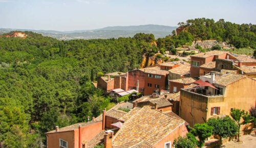 Die leuchtenden Farben von Roussillon – ein malerisches Dorf in der Provence, bekannt für seine ockerfarbenen Felsen und charmante Architektur.