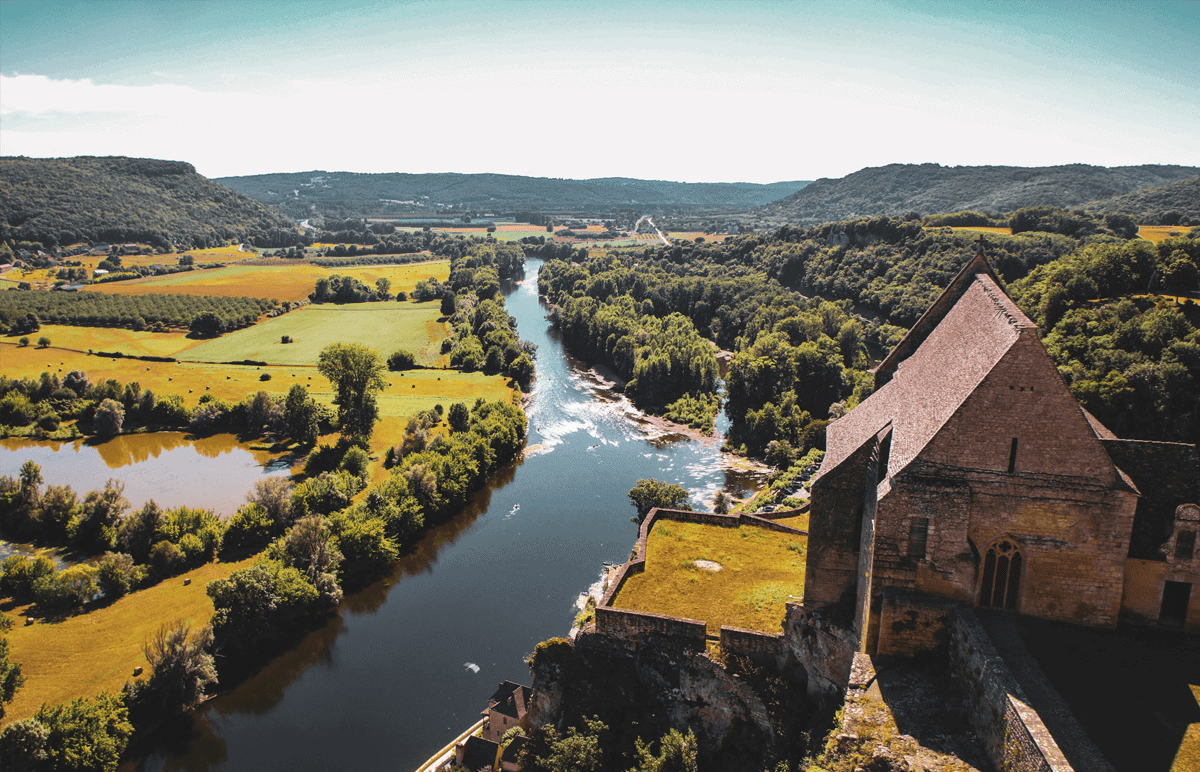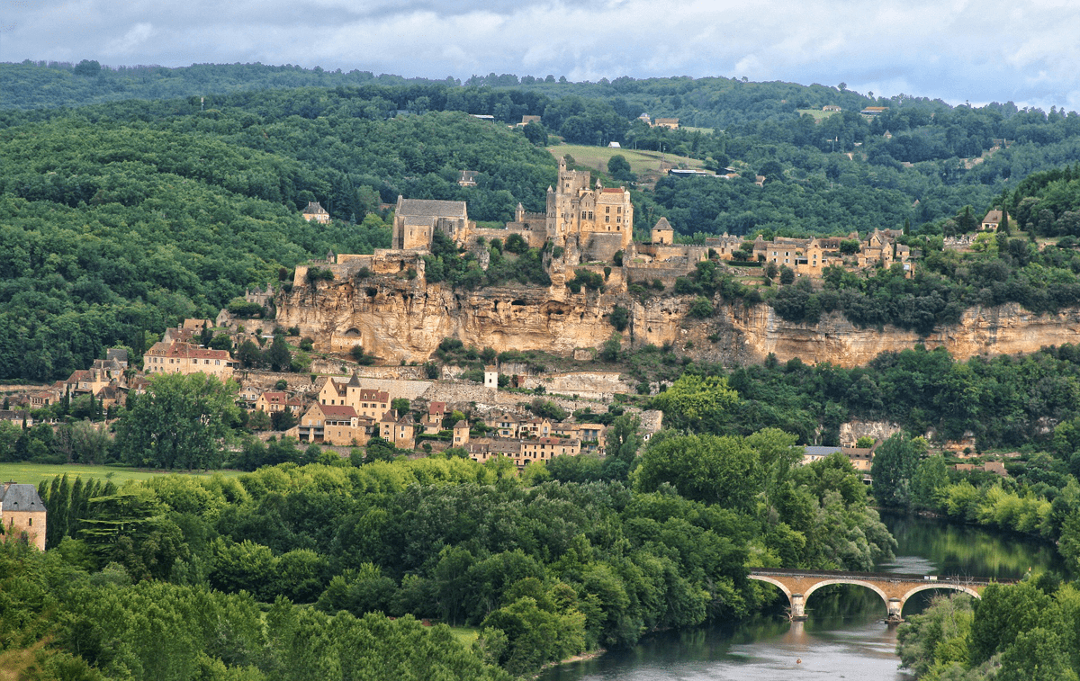 10 km von Sarlat entfernt befindet sich Beynac-et-Cazenac. Es gehört zu den schönsten Dörfern Frankreichs. Auf einem Felsen hoch über der Dordogne thront das imposante Schloss aus dem 13. bis 15. Jahrhundert. Es ist eines der besterhaltenen und berühmtesten Schlösser der Region und fügt sich wunderschön zwischen Fluss und Felsen in die typische Landschaft des Périgord ein.