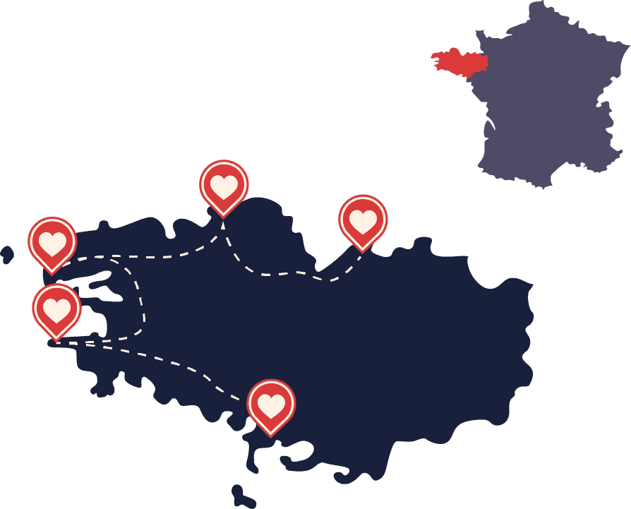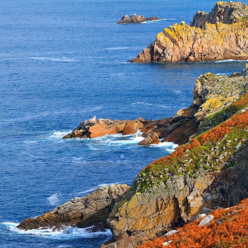 Die Nordküste der Bretagne beeindruckt mit rauer Schönheit und gewaltigen, vom Meer geformten Felsen, die wie stille Wächter über Stränden und Klippen thronen. In Fischerdörfern wie Brignogan-Plages und Kerlouan mit reetgedeckten Cottages, weißen Sandstränden und smaragdgrünem Wasser scheint die Zeit stillzustehen. Die Felsen von Meneham erzählen von der harten Geschichte der Seefahrer, während Natur und Legenden hier zu einer mystischen Einheit verschmelzen.
