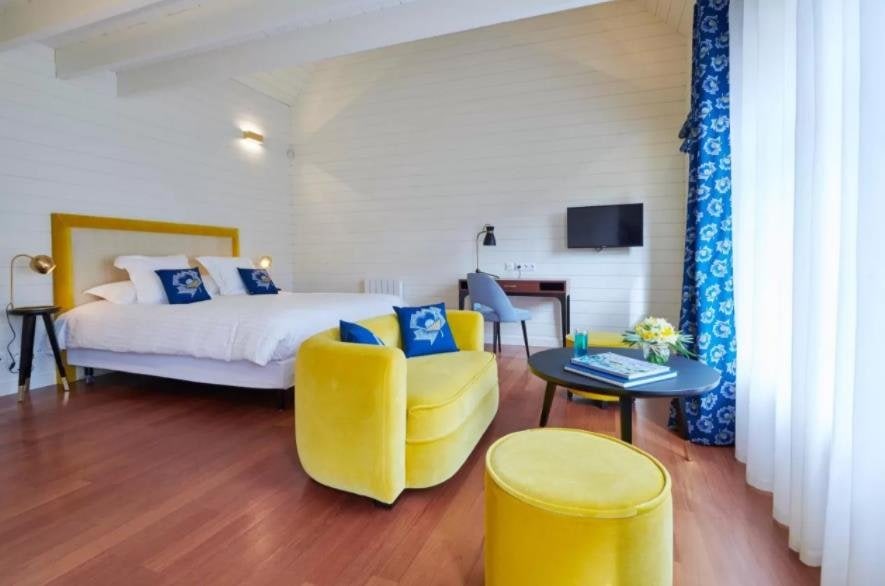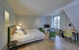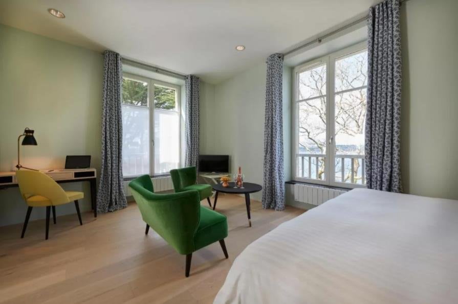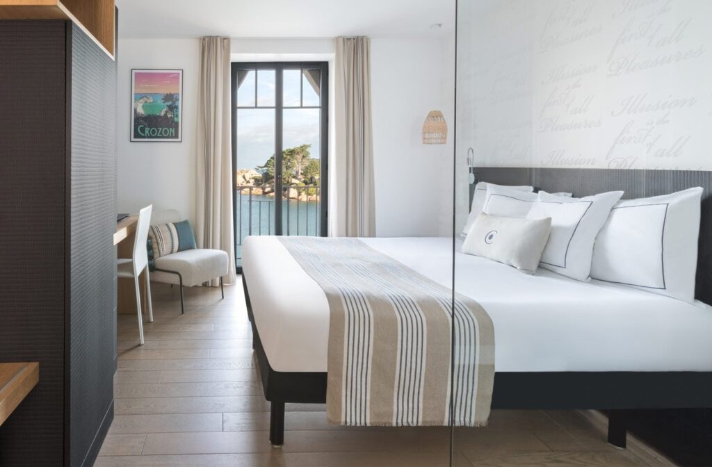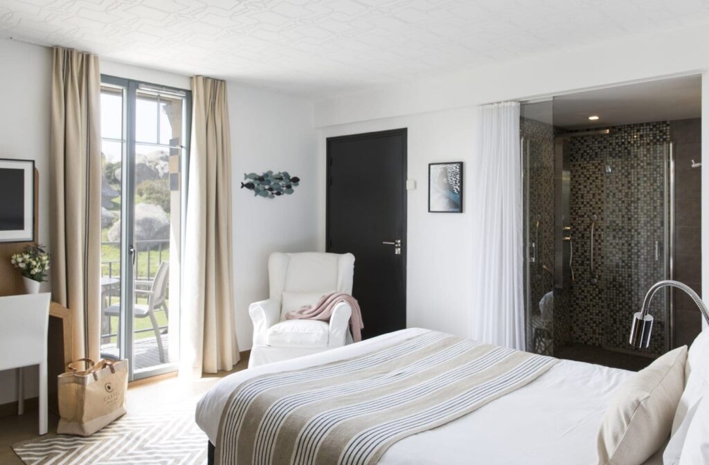Die 19 Zimmer sind in einem einfachen und eleganten Stil eingerichtet. Die großen Erkerfenster lassen das unglaubliche Licht ein, das es so nur in der Bretagne gibt.