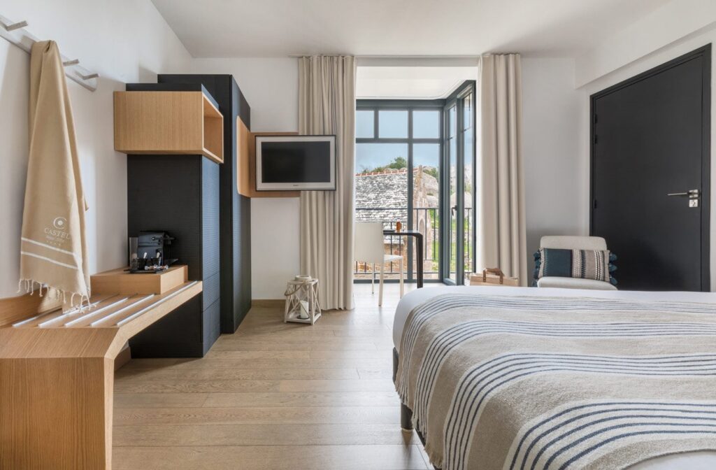 Die Zimmer sind geräumig und mit edlen Materialien komfortabel und geschmackvoll eingerichtet. Sie verfügen über ein eigenes Bad, Flachbild-TV, WLAN und eine Terrasse, Loggia oder privaten Balkon. Der exklusiv gestaltete Wohnraum lädt mit herrlicher Aussicht zu wahrer Ruhe und Entspannung ein. Der Wellnessbereich des Hotels ist mit einer Sauna ausgestattet und bietet ayurvedische Massagen sowie Energie- und Schönheitsanwendungen mit Wirkstoffen aus dem Meer.