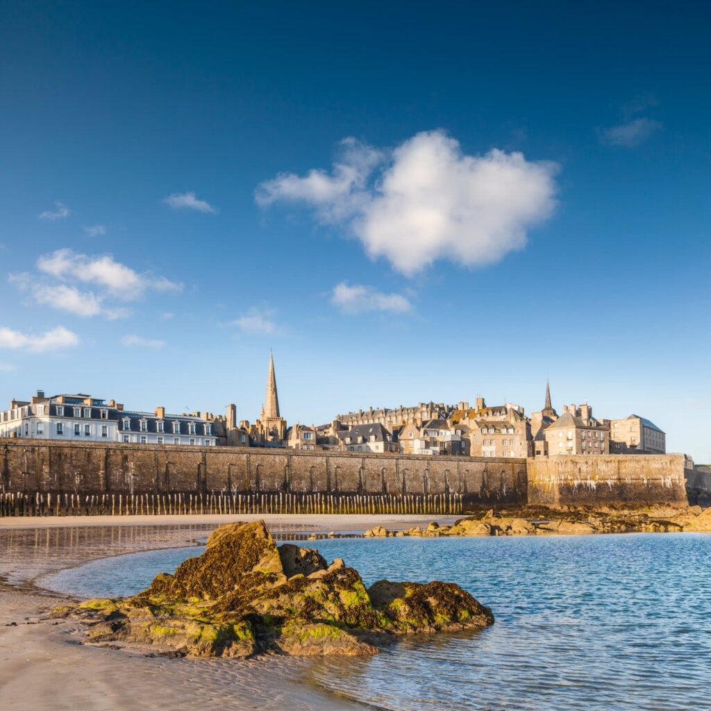 In Saint-Malo erleben Sie die maritime Geschichte der Korsarenstadt: majestätische Festungsmauern, die das tosende Meer umrahmen, verwinkelte Gassen und ein lebendiger Hafen. Weiter südlich lädt das mittelalterliche Dinan mit seinen charmanten Fachwerkhäusern und Kopfsteinpflasterstraßen zu einer Reise in die Vergangenheit ein. Ein Highlight ist das Cap Fréhel, dessen dramatische Klippen und leuchtende Heidelandschaft zu den schönsten Panoramen der Region gehören.