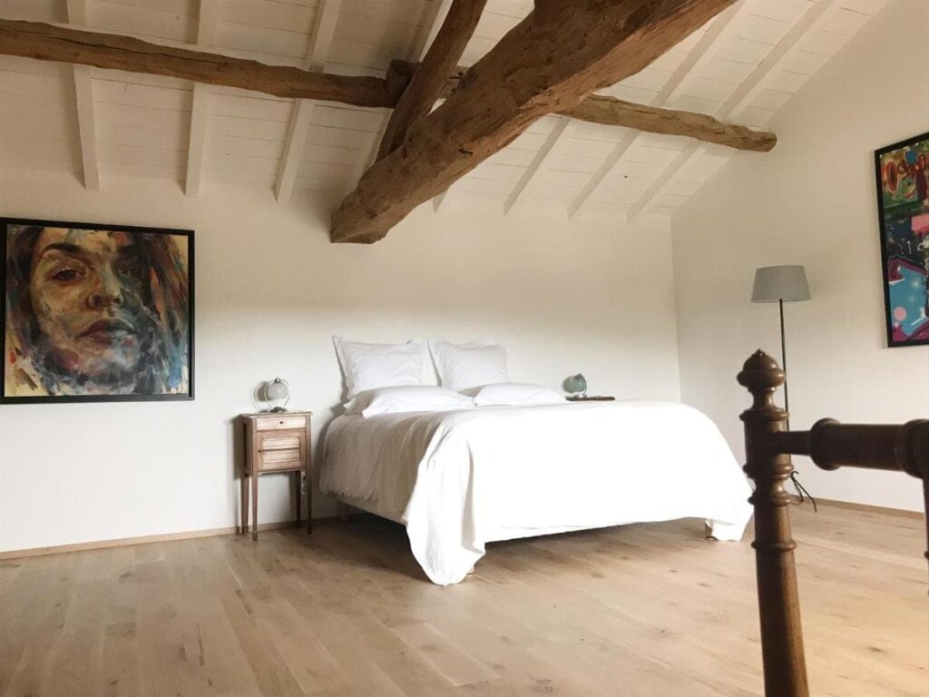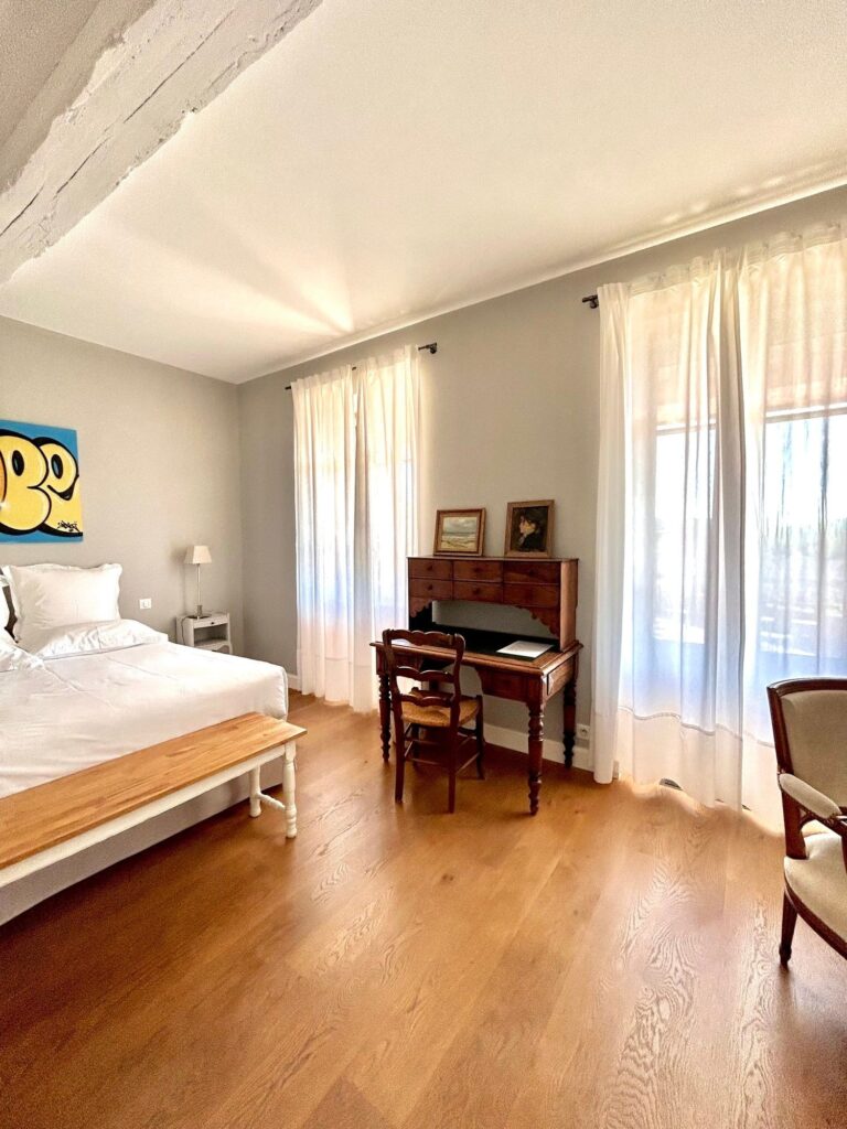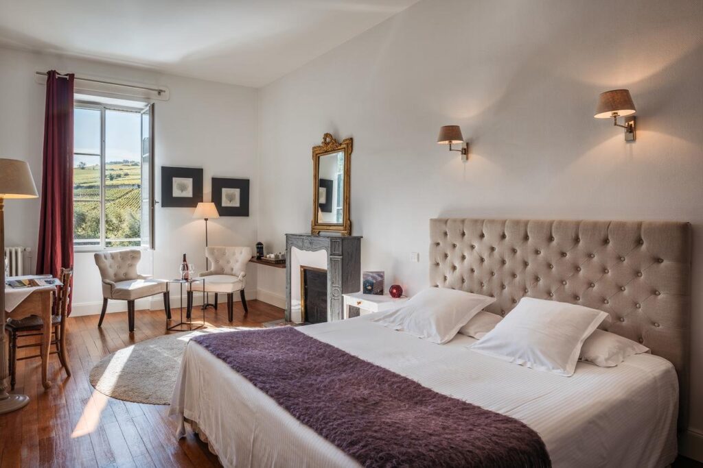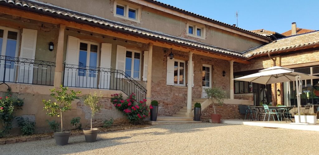 Das Haus, eine ehemalige kirchliche Residenz aus dem frühen 18. Jahrhundert, strahlt den authentischen Charme des Mâconnais aus. Erbaut aus charakteristischem Stein und mit edlen Materialien behutsam renoviert, bleibt die einzigartige Seele des Ortes in jeder Ecke spürbar. In den großzügigen Zimmern, die bis ins kleinste Detail liebevoll gestaltet sind, verschmelzen elegante Antiquitäten harmonisch mit ausdrucksstarken Street-Art-Werken und schaffen so eine besondere Atmosphäre.