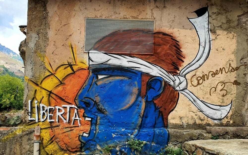 Man sieht ihn überall, auf Flaggen, Wimpeln, Hauswänden, Stirnbändern, Autos: den „tête de maure“, den Korsenkopf. Das typisch korsische Wappen, ihr Freiheitssymbol, zeigt den Kopf eines Schwarzen mit krausem Haar und weißem Stirnband, das im Nacken geknotet ist. Um seine Entstehung ranken sich zahlreiche Legenden. Klar ist nur, dass der Kopf immer Richtung Meer blicken soll, dorthin, von wo einst seine Unterdrücker kamen.