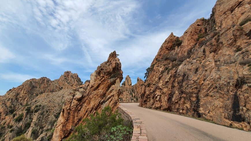 Nein, auf keinen Fall. Im Allgemeinen sind Sie auf den sehr guten Hauptstraßen, die Korsika durchqueren, sicher und entspannt unterwegs. Ebenso auf den normalen einfachen Straßen entlang der Küste. Sie sollten allerdings berücksichtigen, dass es auf Nebenstraßen und in den Bergen auch mal eng zugehen kann. Das fordert den nötigen Respekt und eine entsprechend angepasste Fahrweise. Aber Geschichten, die im Netz von gefährlichen und „beängstigenden“ Strecken berichten, sind meist übertrieben. Klar muss man bei Touren abseits der normalen Routen besondere Vorsicht walten lassen, aber „beängstigend” ist sehr subjektiv. Menschen empfinden unterschiedlich und einige reagieren auf Berg- und Gebirgspassagen mit Schwindelgefühl und Höhenangst. Es gibt Situationen, wo einem kurz der Atem stocken kann, bei der Begegnung mit einem einheimischen Fahrer in einer engen Kurve, beim Anblick eines steilen Abhangs oder bei Tieren auf der Straße. Aber es ist wie überall: Passen Sie Ihre Fahrweise den Verhältnissen an, fahren Sie aufmerksam und lassen Sie sich Zeit. Sie sind ja nicht auf der Flucht!