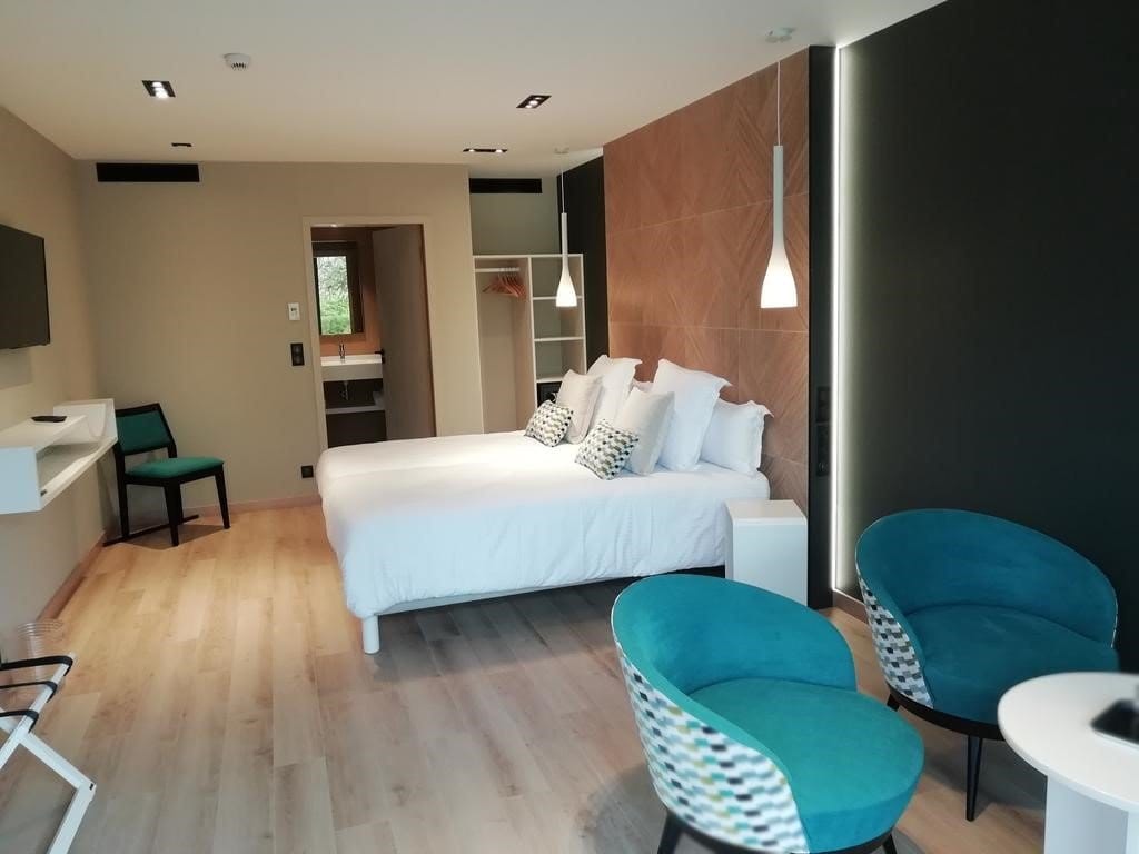 Die 19 Zimmer, davon 11 in einem modernen Anbau im Obstgarten, sind elegant eingerichtet und bieten zeitgemäßen Komfort wie ein eigenes Bad, WiFi und LCD-TV. Im Haupthaus spiegelt die Einrichtung den historischen Charme der Residenz wider, während die Zimmer im Anbau mit einem modernen Ambiente punkten. Einige Zimmer verfügen zusätzlich über eine private Terrasse.