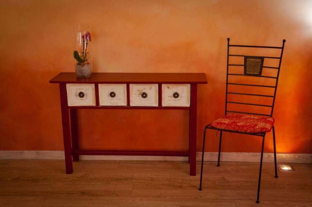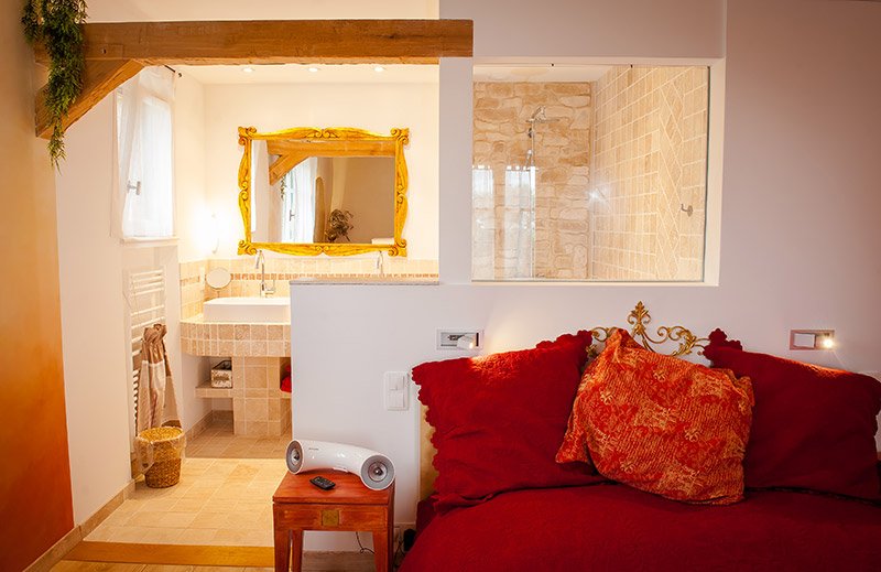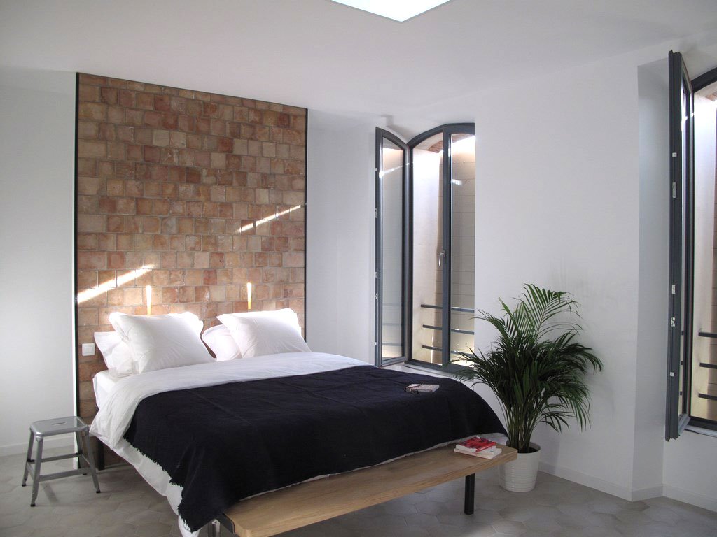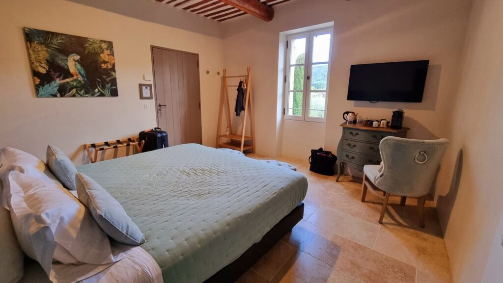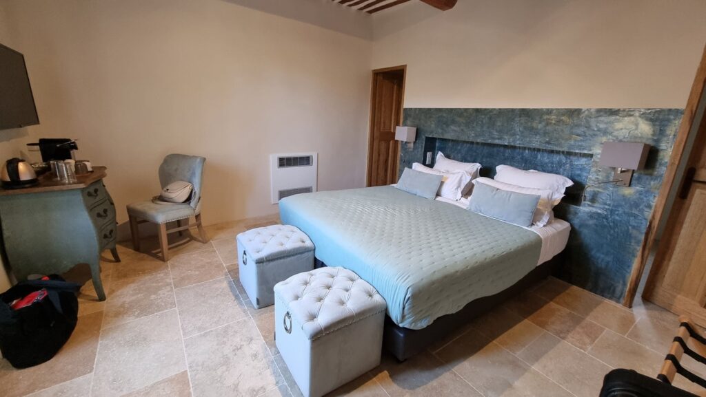 Eine alte Fabrikationshalle für Töpfereiartikel wurde umgebaut zu einem schicken, modernen Chambre d’Hôtes. Für die Region ungewöhnlich, da die Unterkunft hier in der Mehrzahl eher traditionell gestaltet und eingerichtet sind; in aller Regel mit vielen Dekorationsdetails, rustikal und mit viel Patina. Hier sind die Zimmer modern gestaltet und fallen auf durch die Reduktion auf das Wesentliche. Keine überflüssige Dekoration oder Bilder an den Wänden und auch kein Fernseher. Dafür sehr bequeme Betten, Badezimmer mit Regendusche und schöne Balkons mit toller Sicht (nicht bei allen Zimmern).