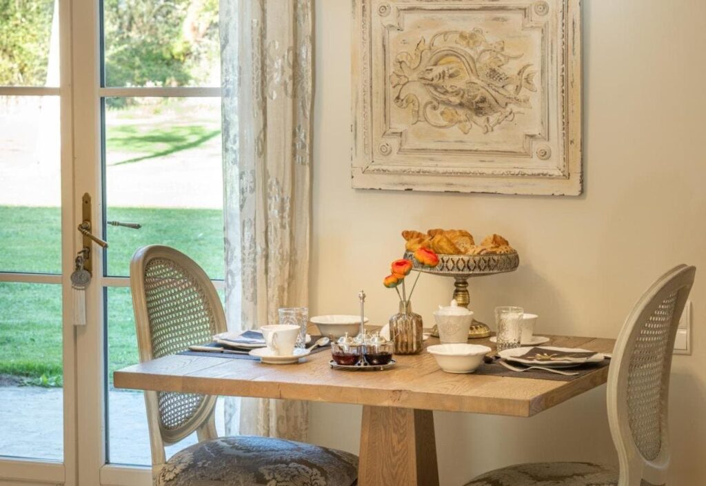 Das Frühstück wird in dem stilvollen Wohnzimmer zelebriert und verwöhnt Sie mit einer Auswahl an regionalen Köstlichkeiten: Zarter Schinken, herzhafter Käse, delikater Räucherlachs sowie Eier aus der Region. Begleitet werden diese Leckereien von frischem Baguette und duftendem Gebäck, serviert mit einer Vielfalt von Marmeladensorten. Darüber hinaus genießen Sie den süßen Geschmack von Honig aus Cheverny und saisonalen Tomaten aus dem Garten.